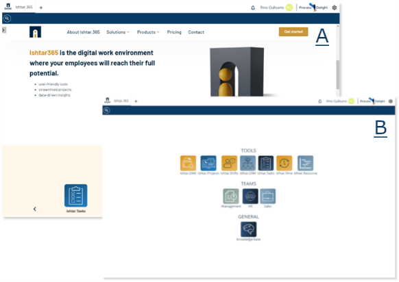 “Standaard” (default) of intranet: Hier kan u bepalen hoe deze pagina wordt weergegeven. Enkel bij de keuze intranet, dient u een link te plaatsen naar de gewenste intranet pagina of website van uw bedrijf. In afbeelding A & B kan u even vergelijken hoe de weergave verschilt tussen de standaard en intranet weergave.